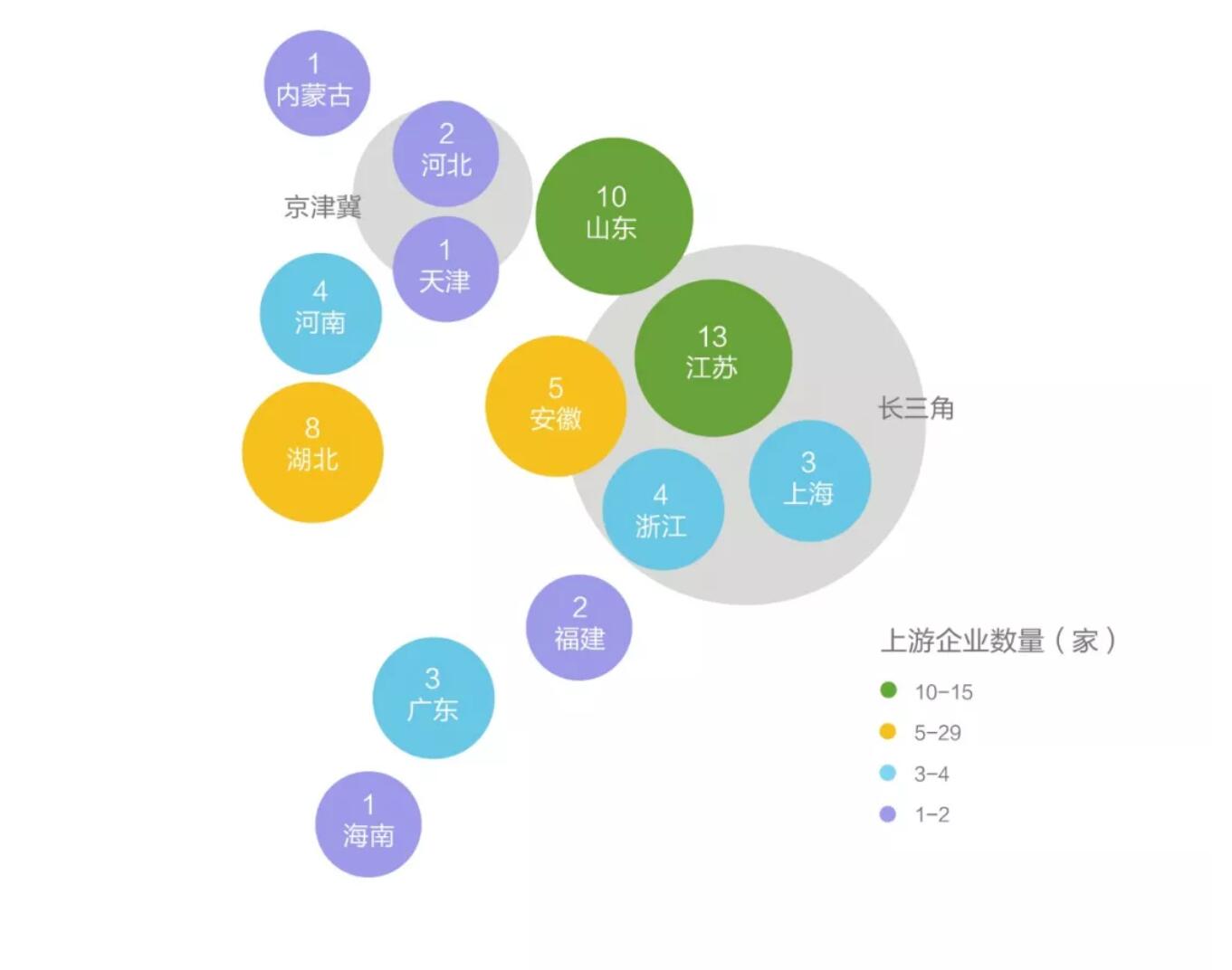 國內(nèi)產(chǎn)能分布主要集中在長三角和京津冀區(qū)域,且與區(qū)域產(chǎn)業(yè)基礎(chǔ)有直接關(guān)系:上游原材料與中游生產(chǎn)企業(yè)多集中在傳統(tǒng)醫(yī)藥基礎(chǔ)良好的長三角地區(qū),下游流通企業(yè)過于分散,如圖1所示。