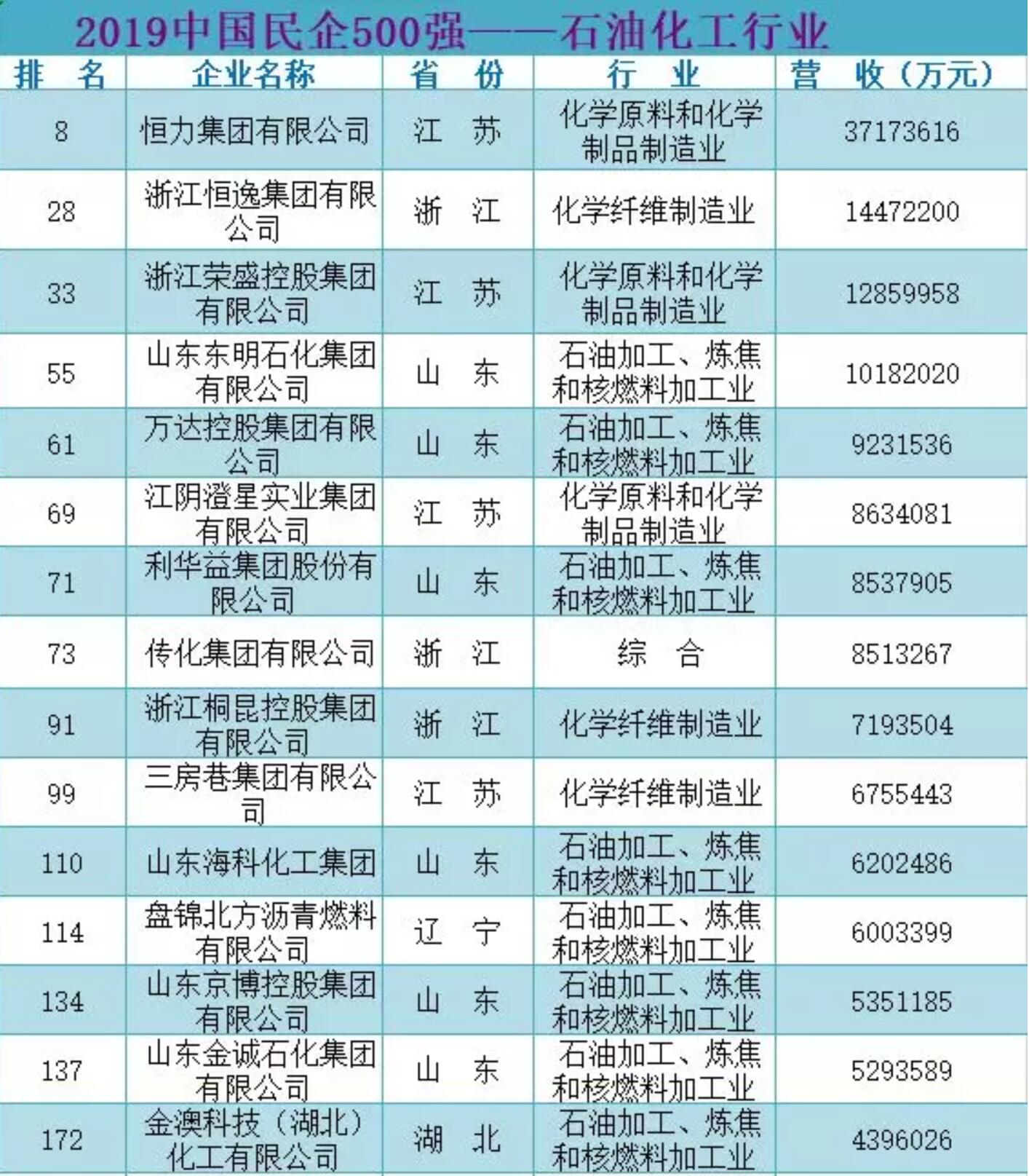 重磅|2019中國(guó)民企500強(qiáng)出爐,55家石化企業(yè)榜上有名