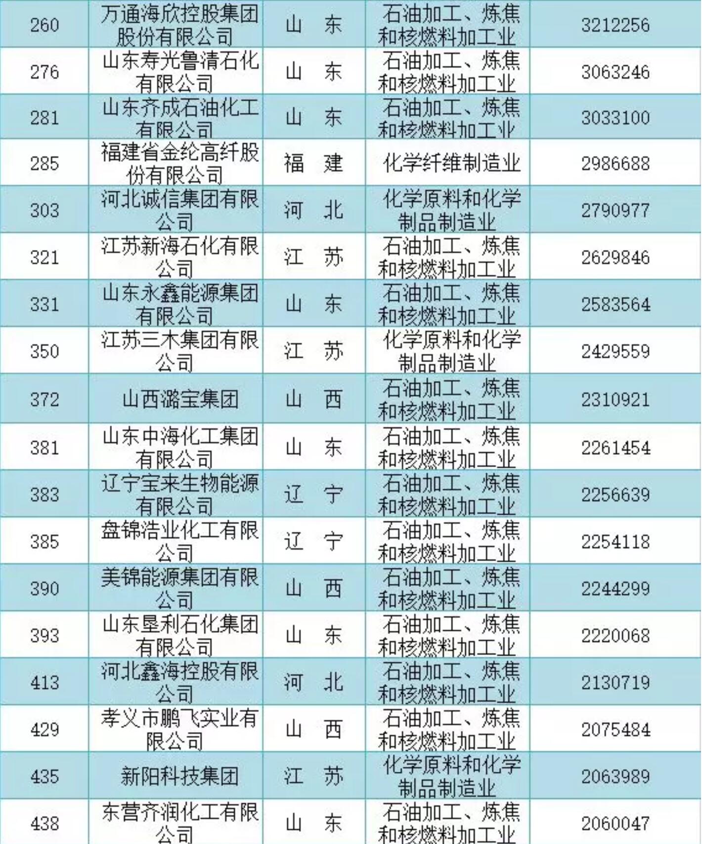 根據(jù)2019中國(guó)民營(yíng)企業(yè)500強(qiáng)”石化行業(yè)的榜單顯示,55家石化民營(yíng)企業(yè)中,石油加工、煉焦和核燃料加工業(yè)有26家,化學(xué)原料和化學(xué)制品制造業(yè)有21家,化學(xué)纖維制造業(yè)有8家。