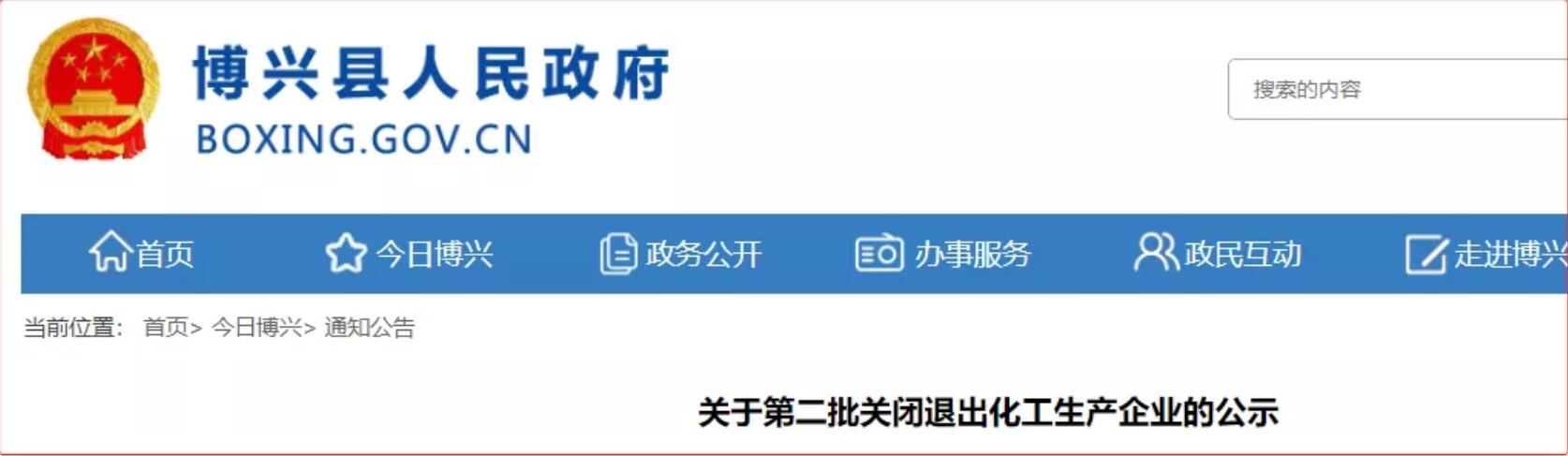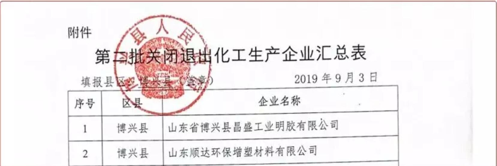 官方公示!濱州這2家化工企業(yè)將關(guān)閉退出!